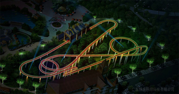 六盤山路上望向哇呀哈完美樂園第一眼就能看到過山車的龐大輪廓,黃藍色相間的粉墨裝飾看起來格外奪目耀眼。
