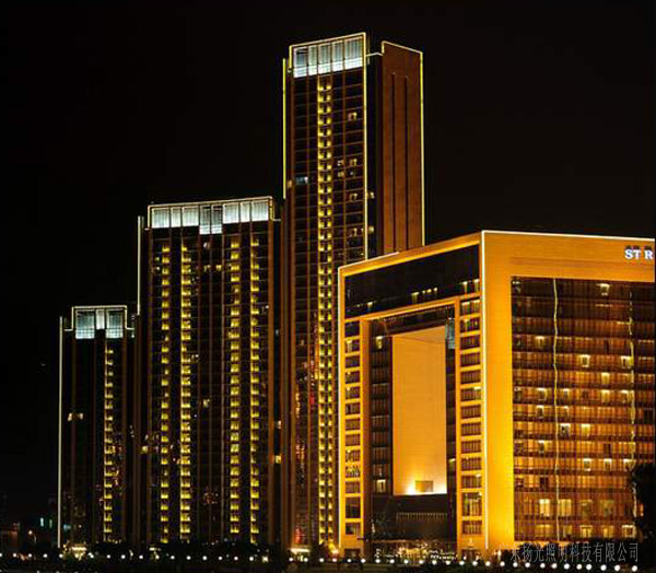 建筑的頂部與底部燈光,突出清晰明亮的建筑遠景視覺效果,提升建筑夜晚對外的吸引力。
