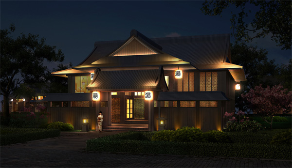 溫泉城用地規模8萬平方米,具有異域風情的溫泉世界,分為泰國溫泉SPA灣、日本櫻花風呂灣等六個區域,匯集土耳其、日本、意大利等國120項風情溫泉。