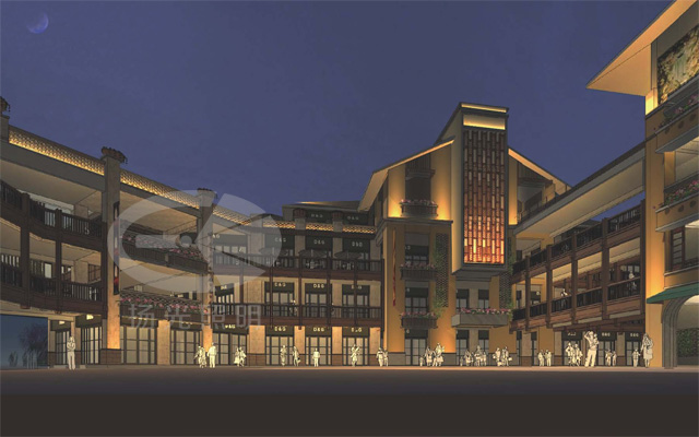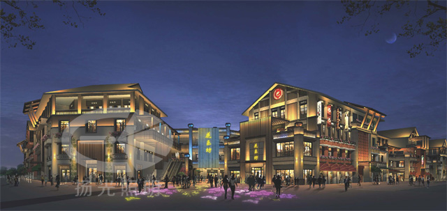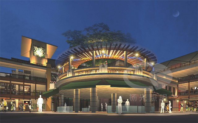 本次設計以體現古鎮建筑民族文化特色和展示項目商業價值為引領,挖掘和探討項目文化背景和建筑特色,利用先進的燈光技術手段塑造特有的古鎮夜景空間形象。讓項目煥發出無限魅力,打造具有表現力的燈光形態,兼顧視覺需求與藝術表現,以一種高貴的姿態展示該項目的商業價值和藝術價值。