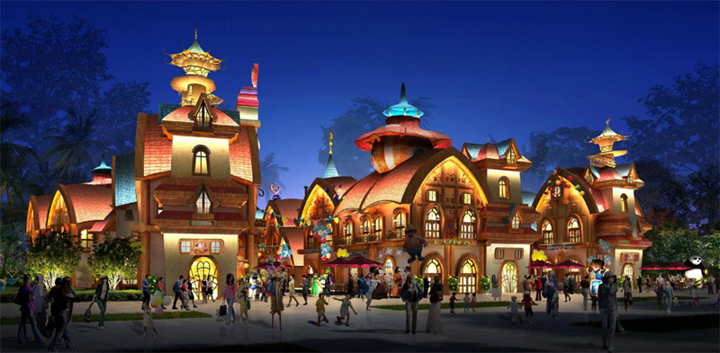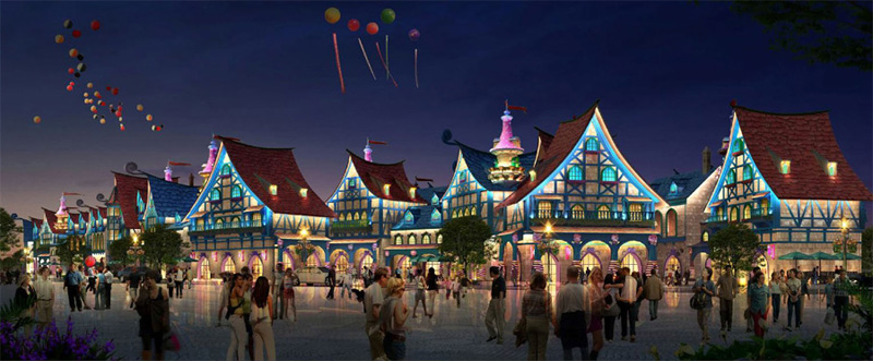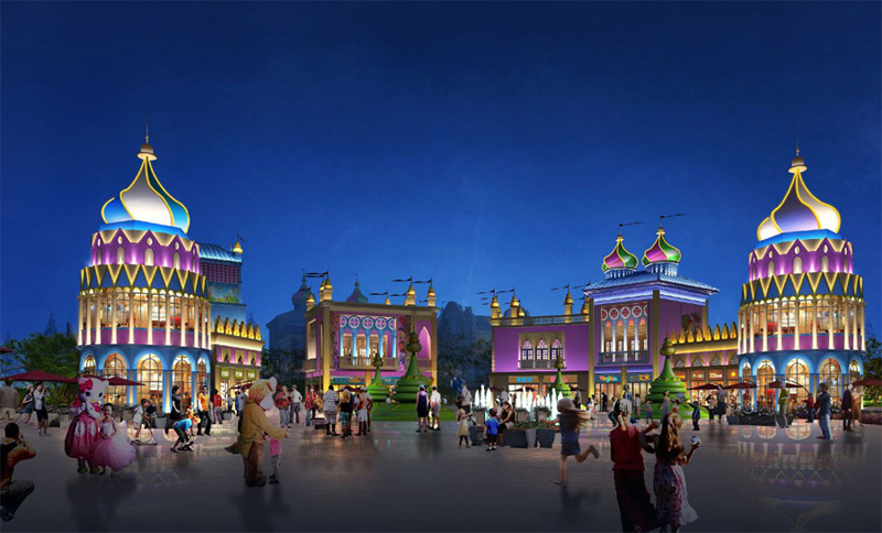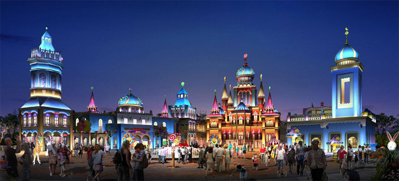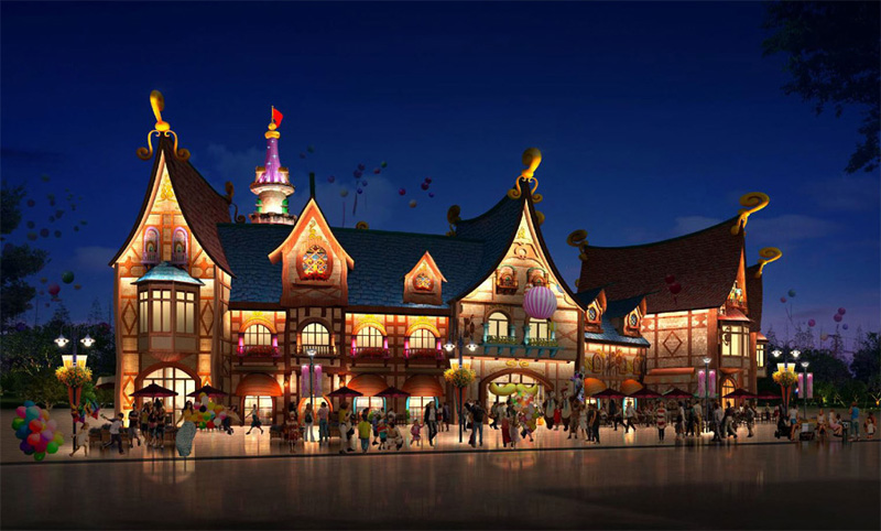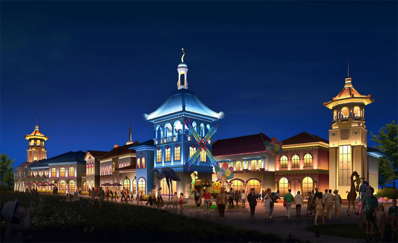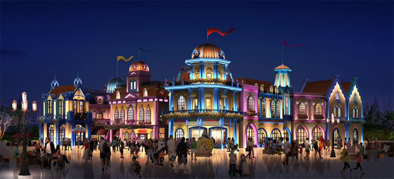 童話大街建筑泛光照明工程項目主要由巴拉莫風格、布達佩斯風格、科隆風格、呂貝克風格、米蘭風格、慕尼黑風格、尼斯風格、紐倫堡風格、托斯卡納風格、熱內亞風格、圣彼得堡風格、尼斯風格等組成,是專為少年兒童打造的旅游項目。
