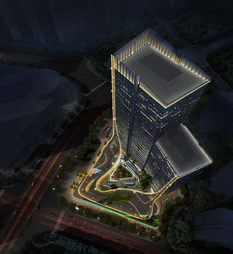 華南區域昆明金地海埂路項目M地塊泛光照明工程位于昆明市西山區前衛西路與海埂路交匯處,項目共計3棟樓,上部分由4層裙樓、一棟24層塔樓(含裙房)及一棟33層塔樓(含裙房)組成,地上部分建筑面積:97378.39平米。