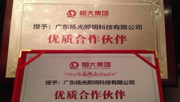 此次揚光照明榮獲恒大地產(chǎn)優(yōu)質(zhì)“供應(yīng)商”稱號,對揚光照明而言,這不僅意味著客戶對照明設(shè)計施工及產(chǎn)品服務(wù)的認可,更表明今后公司將照明工程專業(yè)化方面有著不可推卸的的責(zé)任和義務(wù)。需繼續(xù)發(fā)揮積極作用,起到示范和帶頭作用。揚光照明將以此為契機,進一步強化施工技術(shù)創(chuàng)新工作,推動企業(yè)核心競爭力的快速提升。