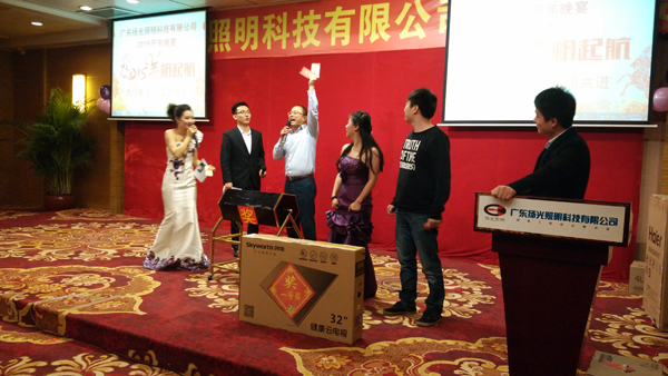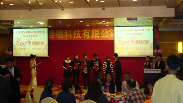 喜悅伴著汗水,成功伴著艱辛,遺憾激勵(lì)奮斗,我們不知不覺地走進(jìn)了2015年。在元宵佳節(jié)來(lái)臨之際,揚(yáng)光照明開年晚宴在東莞會(huì)展酒店隆重舉行,揚(yáng)光照明總經(jīng)理李總,全國(guó)多個(gè)分公司負(fù)責(zé)人、全體員工及員工家屬共同出席。 美味的晚宴中伙伴們與家屬共同觀看了揚(yáng)光照明給大家?guī)?lái)的節(jié)目,節(jié)目?jī)?nèi)容精彩紛呈。