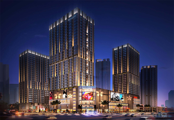 建筑裙樓外圍的燈光從觀看和感受入手,以體量為單位,強(qiáng)調(diào)大面積光感給人和車流的視覺(jué)沖擊,從視覺(jué)的角度吸引消費(fèi)群體。