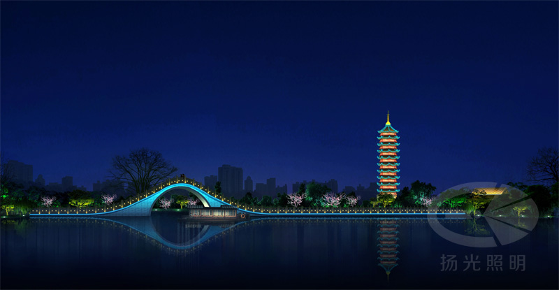 道路照明設計需在滿足國家道路照明標準值的前提下,運用新技術達到綠色節(jié)能照明,充分結合藝術美學,使城市光環(huán)境提升,營造熱鬧、繁華的氛圍。橋梁照明設計在結合道路照明技術運用下,充分分析橋梁建筑結構特色,用燈光化作畫筆用燈光勾勒出橋梁結構線條美感,用光色去涂繪繽紛的橋梁色彩。展現(xiàn)出鮮明的標志性和獨特性。