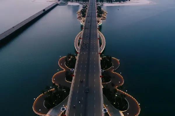 恒大海花島1號(hào)島入島主橋梁是海花島的三個(gè)人工島連接陸地側(cè)濱海大道的一條主要通道,橋長(zhǎng)608米,寬17米。