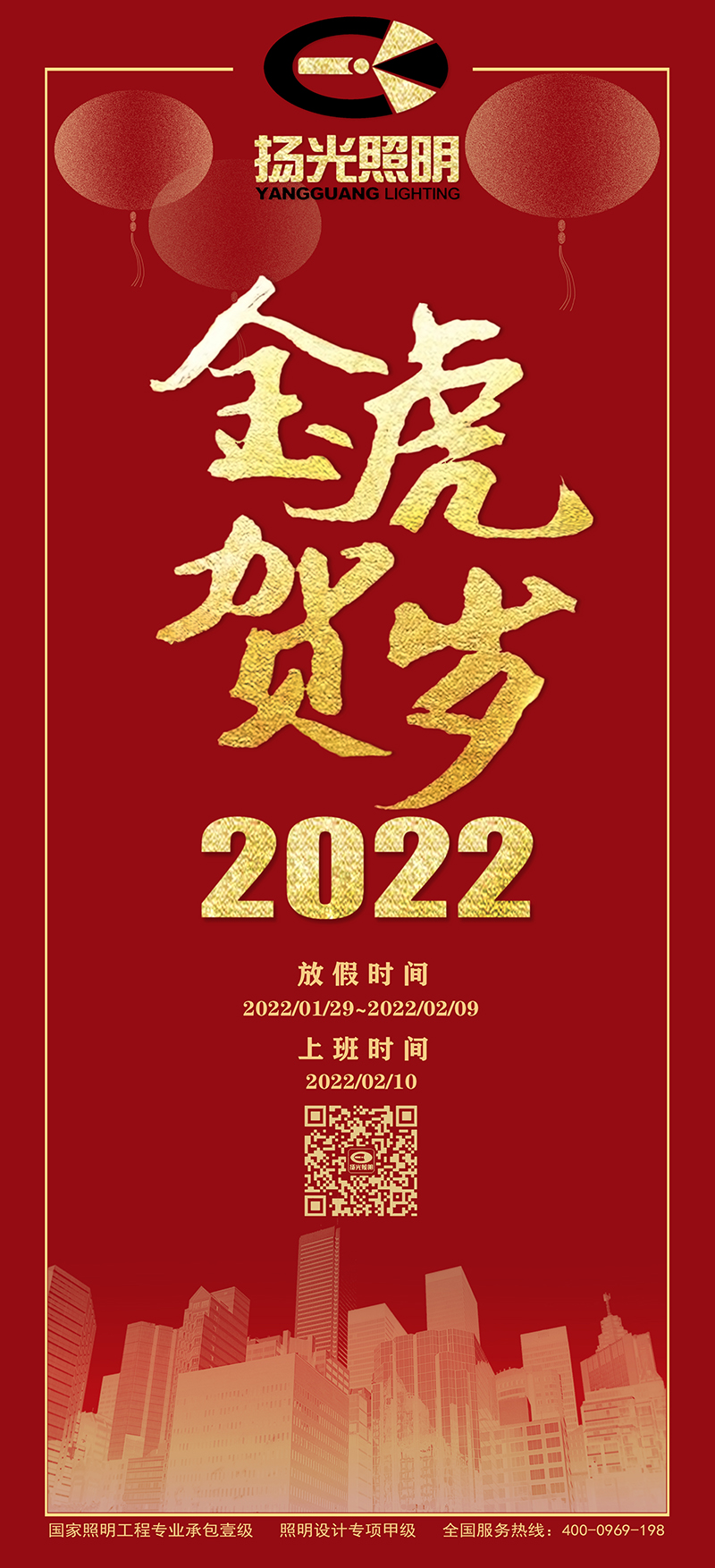 歲月更迭,四季輪回。不平凡的2021年已經(jīng)結(jié)束,在努力和堅(jiān)守中我們迎來(lái)了嶄新的2022年。感恩大家在過(guò)去的一年里對(duì)揚(yáng)光照明一如既往的支持和信任!在2022年春節(jié)來(lái)臨之際,根據(jù)《國(guó)務(wù)院辦公廳公布2022年春節(jié)放假安排》,結(jié)合公司實(shí)際情況與工作安排,春節(jié)放假安排如下: